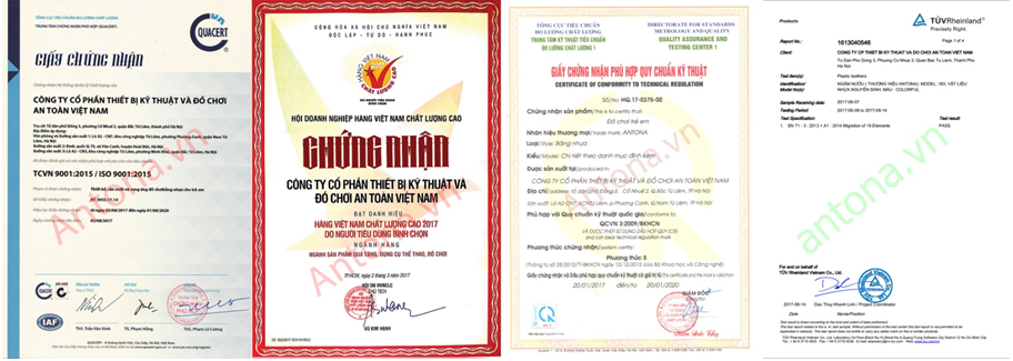 Các giấy chứng nhận tiêu biểu của ANTONA