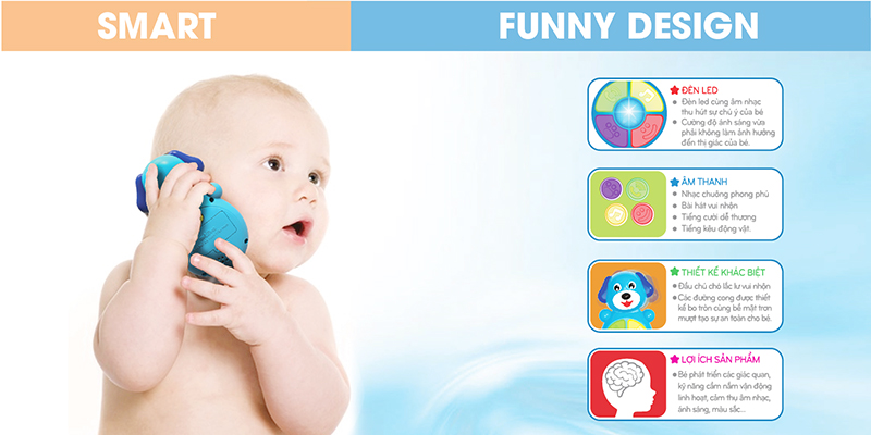 Việc phát triển toàn diện từ nhỏ cho trẻ vẫn luôn là vấn đề mà bố mẹ quan tâm đặc biệt. Phát triển về nhận thức, về tư duy, về cảm nhận sẽ giúp bé ngày càng hoàn thiện bản thân mình. Chính vì thế, chúng tôi xin giới thiệu đến các bạn đồ chơi điện thoại vui nhộn Baby Phone giúp cho bé kích thích giác quan phát triển tối ưu, kiểm soát cảm xúc, nâng cao kĩ năng cơ bản như kĩ năng về ngôn ngữ, giao tiếp, vận động (lắc lư nhảy múa theo nhạc),... và hình thành tính cách phóng khoáng sau này.