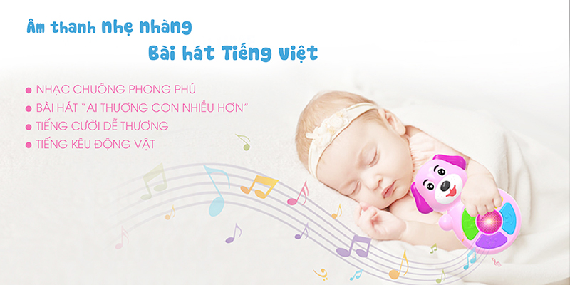 Âm thanh đa dạng,trong đó có bài hát bản quyền "Ai thương con nhiều hơn", giúp bé sớm làm quen với Tiếng Việt, hỗ trợ bé học nói, học hát sớm và làm quen với dòng âm nhạc chính thống được khuyến khích bởi Bộ Giáo dục và Sở Văn hóa; đồng thời nâng cao nhận thức, hiểu biết về việc tôn trọng quyền tác giả, quyền sở hữu.