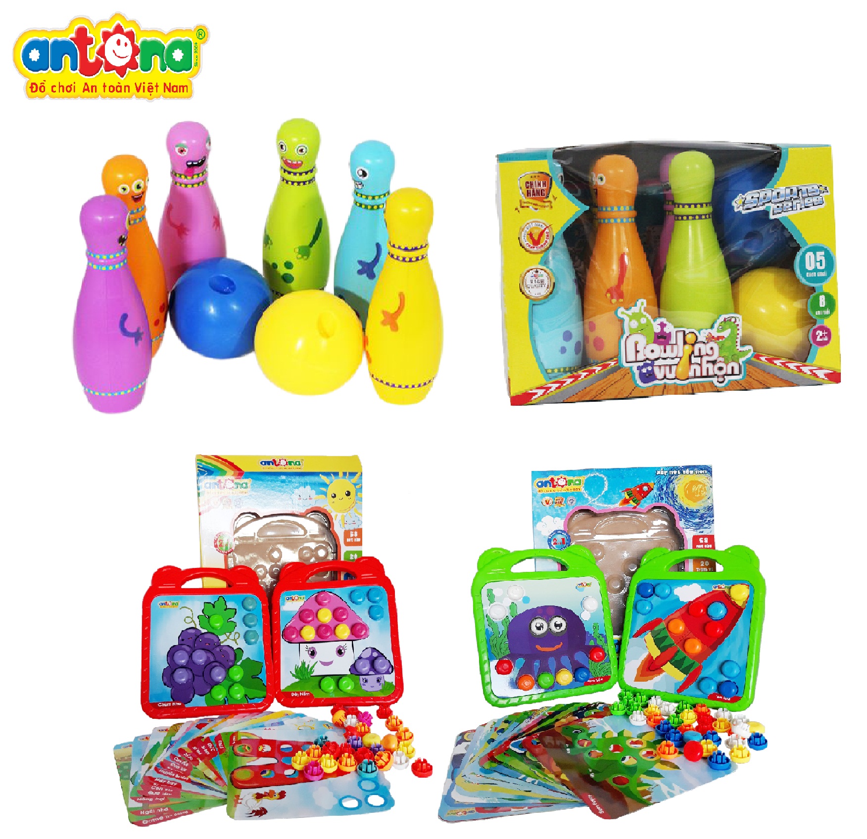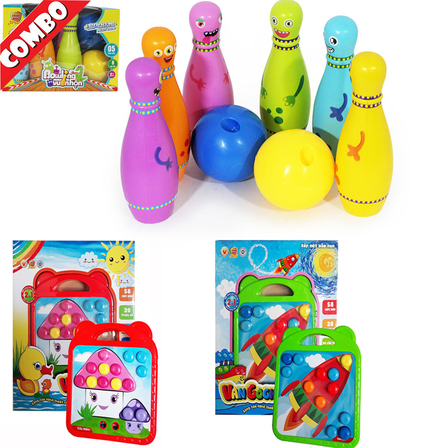 Bộ sản phẩm bao gồm: 1 Bộ Bowling vui nhộn và 1 Bộ xếp nút mầm non VanGogh (1 hoặc 2)