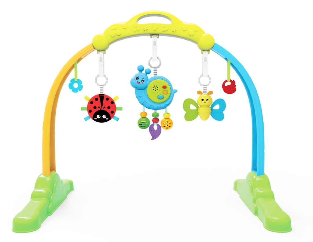 Bé từ 3 tháng tuổi trở lên: Bố mẹ đặt bé nằm bên dưới sản phẩm "Baby gym- kệ cầu vồng". Những chiếc xúc xắc nhiều màu sắc được treo lơ lửng trước mặt sẽ thu hút sự chú ý của bé, giúp bé tăng cường khả năng quan sát và rèn luyện cho bé sự tập trung sau này. Bé sẽ chơi bằng cách nhìn tập trung vào các xúc xắc treo và bắt đầu tập các động tác với, cầm, nắm các xúc xắc. Bé vừa chơi vừa được phát triển những giác quan cơ bản như thị giác, thính giác, xúc giác và các bài tập vận động giúp bé tăng cường sự khéo léo của đôi tay. Còn khi bé nằm úp sấp, lẫy lật, xúc xắc sẽ là động lực kích thích bé chống tay nâng ngực rướn người lên với, quá trình này giúp bé thêm cứng cáp, tăng thêm lực ở các nhóm cơ hỗ trợ bé sớm biết bò.