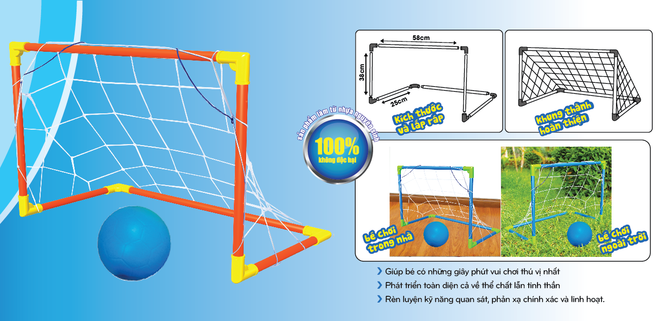 Bóng đá – môn thể thao vua được rất nhiều trẻ em và các bậc phụ huynh yêu thích. Với những lợi ích tuyệt vời cho người chơi như cải thiện sức khỏe, nâng cao khả năng tập trung, rèn luyện tinh thần thể thao thì việc cho trẻ tham gia vào trò chơi bóng đá là điều nên làm. Nhưng nếu bạn chỉ nghĩ đơn thuần là tạo điều kiện cho bé chơi bóng đá chỉ với 1 quả bóng là một thiếu xót đấy nhé. Hãy trang bị cho bé 1 bộ đồ chơi bóng đá với cả khung thành để bé có những trải nghiệm trọn vẹn nhất với bộ môn này nhé.