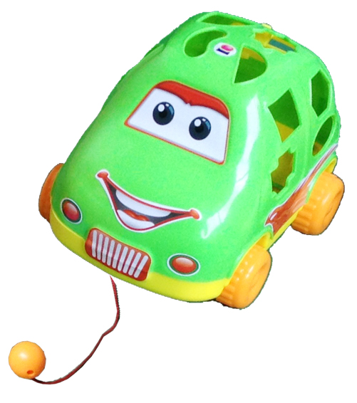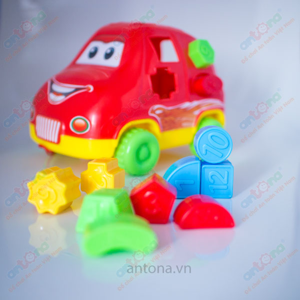 Sản phẩm là một chiếc xe ô tô xinh xắn và 12 hình khối đơn giản khác nhau nhiều màu sắc như hình vuông, hình tròn, hình chữ nhật,… Bé sẽ bắt đầu bằng việc đổ các hạt thả ra bên ngoài chiếc xe ô tô và thả lại hình khối vào xe sao cho đúng. Bé sẽ phải phối hợp giữa tay và mắt, phải tìm đúng hình mới có thể cho vừa lọt vào xe ô tô bởi mỗi ô thả trên thân ô tô được thiết kế chỉ thả đúng một hình duy nhất, các hình không thể thả lẫn ô được với nhau.